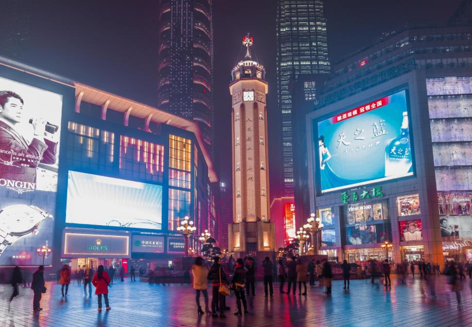 該區域緊鄰朝天門碼頭、洪崖洞、湖廣會館、長江索道等網紅景點,周邊高端商場、寫字樓林立,日均有效覆蓋人流量超過100萬以上。