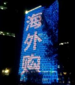 | 北京三里屯通盈中心: 樓頂展示面為東、西向,畫面同步播放。 樓體幅寬80米,高150米,為三里屯地區(qū)第一高樓。 最大程度影響工體北路、二環(huán)、三環(huán)、三里屯商圈人群 |