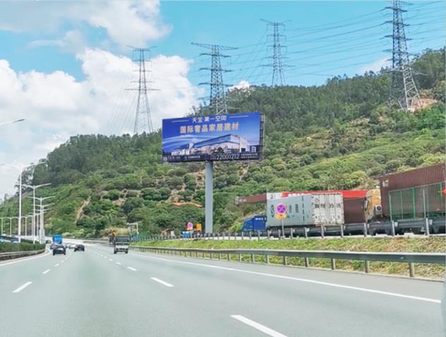 地理位置:莞深高速黃江服務(wù)區(qū)東莞方向雙面立柱廣告牌(樁號(hào)K35+900)