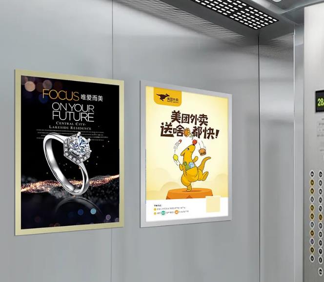電梯框架廣告是指電梯轎廂內的廣告框,一般用來安裝廣告海報,起到廣告作用。電梯廣告框架是生活中最常見的電梯廣告類型,也最為普遍的類型,通常在商場、小區電梯內是常??梢钥匆姷囊环N廣告方式。在投放此類廣告商一定要在海報設計上富有創意,采用多圖少字的設計,信息量充足,這樣才能達到傳播的效果。