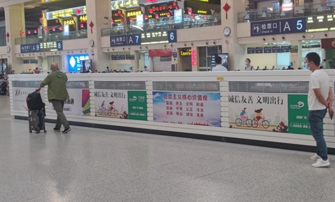 漢口站進(jìn)站大廳安檢口兩側(cè)燈箱廣告
