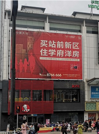 此廣告位于恒大華潤萬家店外立面戶外大牌,固定噴繪畫面,撫州新區(qū)中心,恒大御府,學府天城,碩豐天城,與撫八線相連,人車流量大,廣告效果好