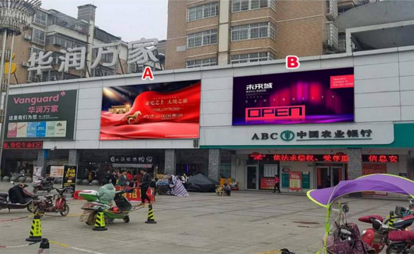此廣告位于臨川華潤萬家外墻廣告位,臨川區(qū)城市中心,人車流量大,廣告效果好。