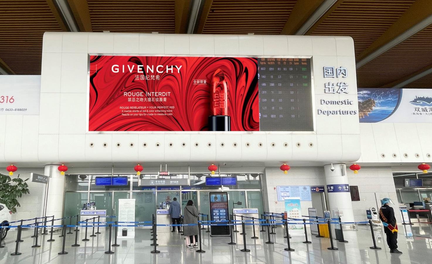 日照山字河機場廣告-國內出發(fā)安檢正上方led廣告