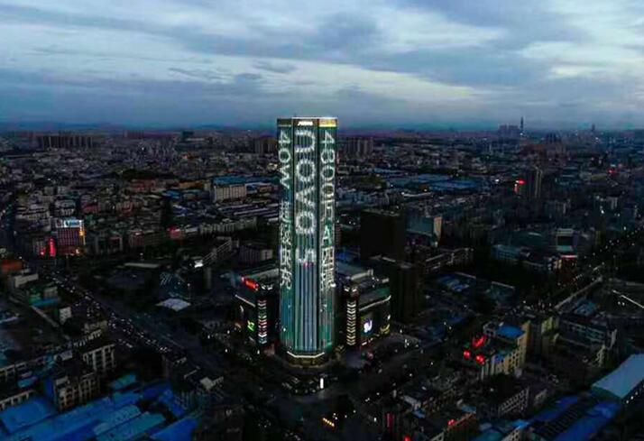 城市地標(biāo)燈光秀廣告,廣東中山小欖海港城玻璃幕墻燈光秀廣告