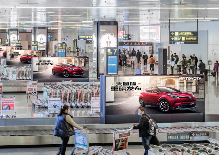 南寧吳圩機場國內到達行李轉盤上方LCD拼屏廣告
