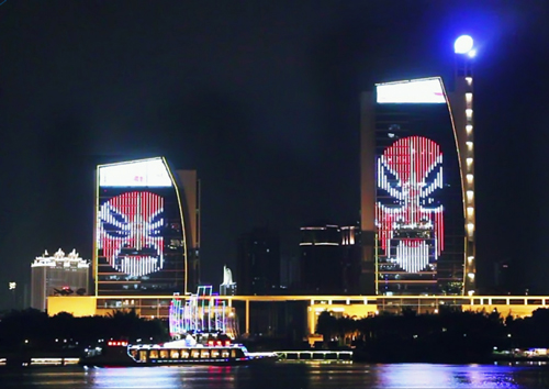 福建省廣電中心A、B兩棟大樓巍然屹立在閩江江畔,毗鄰閩江的樓面通過LED技術呈現出立體炫目的光電效果,成為夜晚閃耀閩江的信息發布superstar!