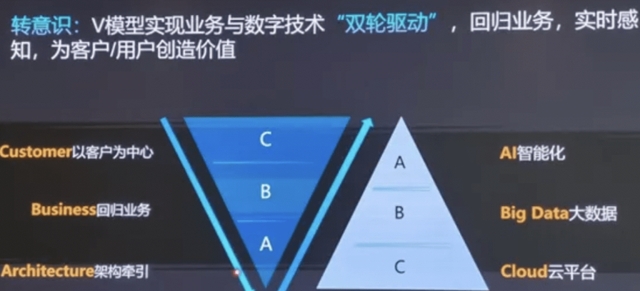 例如,華為在數(shù)字化轉(zhuǎn)型中意識到,數(shù)字化轉(zhuǎn)型是兩個詞,其中數(shù)字化是手段,轉(zhuǎn)型才是目的,轉(zhuǎn)型具體轉(zhuǎn)什么?是“五個轉(zhuǎn)變”:轉(zhuǎn)意識,轉(zhuǎn)模式,轉(zhuǎn)組織,轉(zhuǎn)文化,轉(zhuǎn)方法。以轉(zhuǎn)意識為例,大多數(shù)企業(yè)談數(shù)字化轉(zhuǎn)型講得做多的是“ABC”:人工智能、大數(shù)據(jù)、云平臺,而華為認(rèn)為這些只是技術(shù)手段,首先要轉(zhuǎn)的是意識,即“CBA”:以客戶為中心,業(yè)務(wù)主導(dǎo),架構(gòu)牽引。