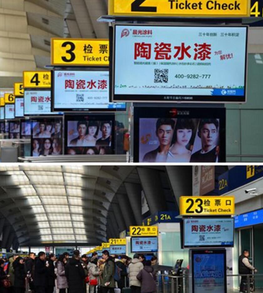 據悉,2019年春運從1月21日至3月1日結束,共計40天。根據預測,2019年春運廣州南站地區旅客總到發量達2043.09萬人次,日均到發量為51.08萬人次,同比2018年增長19%;北京地區三大站(北京站高鐵廣告、北京西站高鐵廣告、北京南站高鐵廣告)預計發送旅客1550萬人,同比增加103.4萬人,增幅7.1%。如此龐大的人流量,其傳播潛力可想而知。